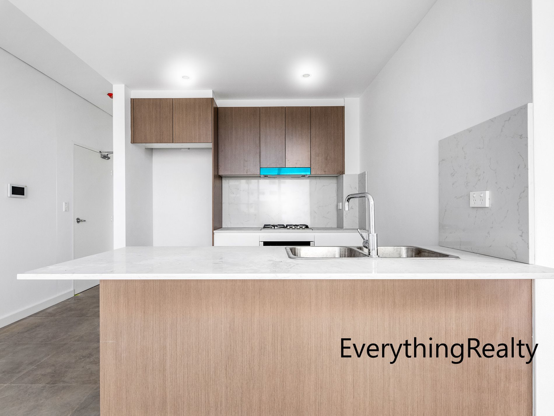 - Modern kitchen with Cesar stone bench tops and stainless steel appliances